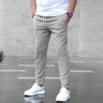 Men’s Casual Slim Fit Pants with Pockets & Drawstring – Fashionable & Comfortable Trousers