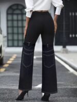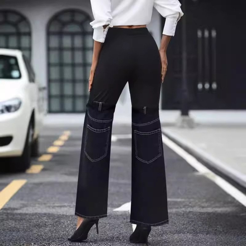 Slim Knit Denim Pants for Women – Comfy Elastic Waist & Fashion Stitching